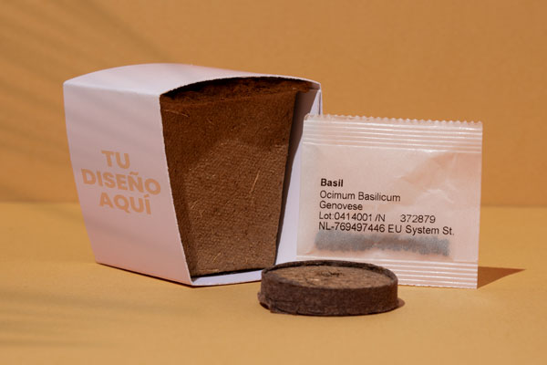 Dieses Pflanzset besteht aus einem zu 100 % kompostierbaren Topf, einer Torfscheibe, einem Saatguttütchen und einer personalisierbaren Banderole, die aus Saatpapier gefertigt werden kann. Ein Werbegeschenk, das zu einer Pflanze wird und Ihr Engagement für Nachhaltigkeit und die Liebe zum Planeten demonstriert.