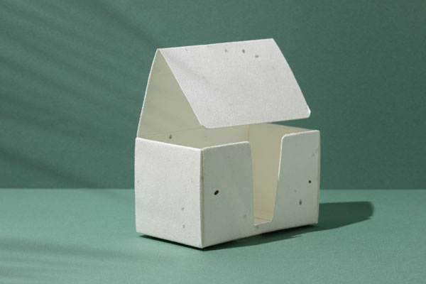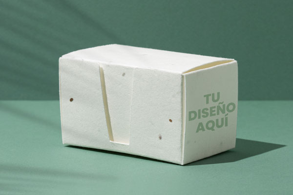 Diese umweltfreundliche Box im Format 95×55×55 mm bietet reichlich Platz für Ihre Botschaft – und das sowohl außen als auch innen. Das hochwertige Saatpapier verleiht Ihrer Verpackung nicht nur eine natürliche Optik, sondern setzt auch ein klares Zeichen für Nachhaltigkeit. Präsentieren Sie Ihre Marke auf originelle Weise und hinterlassen Sie einen bleibenden Eindruck, der über den Moment hinauswächst.